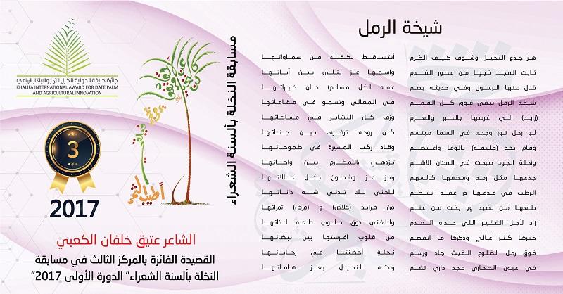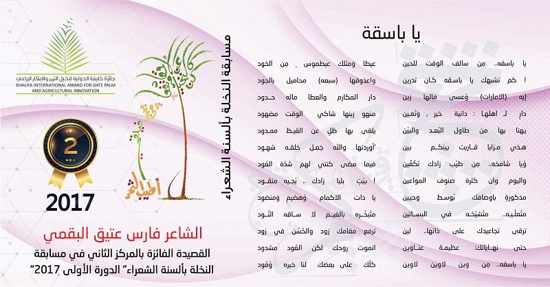 الشاعر فارس عتيق البقميالقصيدة الفائزة بالمركز الثاني في مسابقة "النخلة بألسنة الشعراء" الدورة الأولى 2017